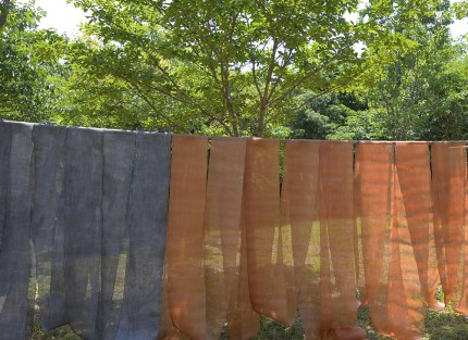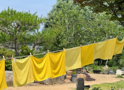따뜻한 햇빛을 쬐며 초록초록한 숲과도 조화로운 천연염색 천들